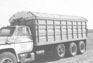 Framed with 2-in. dia. exhaust pipe and covered with aluminum siding, the four 2-ft. wide doors slightly overlap the 7-ft., 6-in. width of the 18-ft. long grain box. Besides wind, they also do a fair job of keeping out rain, Litchfield notes.