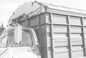 The two center doors are opened and closed by a 2 1/2 by 30-in. pneumatic cylinder plumbed into the truck's air brake system. Two small hydraulic cylinders on the door opening mechanisms act as snubbers, or shock absorbers, to cushion opening and closing.