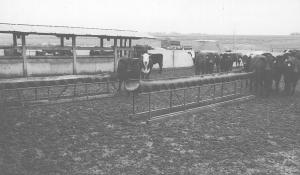 Cut-down tractor tires can be used to make indestructible grain feeders for cattle. Harvey Lorton, cuts the sidewalls off tractor tires and then stretches the tread out, in-side up. The stretched-out tire casings bolt to a metal framework about 3 ft. above ground.