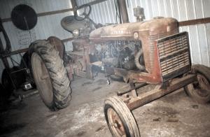 He built a frame around the engine and transmission and attached it to the rear axle. He built a new wide front end for the tractor and used the original tires and spindles as well as the original gas tank, hood and grill.