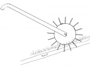 The first thing I tried was something I call a æmole stabber'. It consists of a 10-in. dia., 1/2-in. thick steel disc with 3-in. sharpened steel spikes welded to it. The spikes are about 1 1/2 in. apart. A handle is attached to an axle that runs through the disc. I just push the stabber ahead of me, following the path made by the moles as they dig their tunnels and push the dirt up. I know I've killed at least one mole this way because as I stabbed into the tunnel I heard him squeak and then dug him up. But I decided that method was too hit and miss.