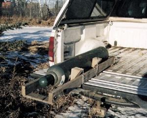 Homemade Cradle Keeps Oxygen Acetylene Tanks From Rolling Around FARM SHOP Miscellaneous 24-3-34 I made a cradle for the back of my pickup to keep oxygen and acetylene tanks from rolling around. I made it out of a pair of 2 by 4's about 5 ft. long. The ends and bottom are short pieces of 1 by 4. I use a couple wedges made out of chunks of 6 by 6 cut at a 45? angle to hold them tight. The wedges are held to the cradle by light pieces of chain. (William F. Plant, Marshall, Sask. S0M 1R0 Canada)