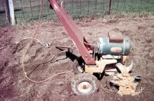 "I start out using the rototiller in the corner of the garden that's closest to the outlet," says Unger. "I hold the cord in my right hand as I walk toward the other end of the garden. When I get there, I turn around and come back so that the cord is laying in the row where I just tilled. You probably wouldn't want to try this idea if your garden was 300 ft. from the nearest outlet. However, you could install a weatherproof outlet next to the garden and run a buried wire out to it, then use a cord off the outlet. If you wanted, you could also run a buried water line next to the wire so you could add irrigation water."