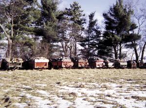 Steven Kling of Taylor, Wis., decided to put his wood pile on wheels, using seven old manure spreaders with the apron and beaters removed. He leaves the back end of the spreaders completely open.