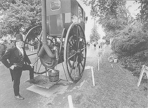 Richard Dudgeon, of New York, ran his steam carriage many hundreds of miles and once covered a mile in under two minutes. Although the inventor claimed the carriage could carry 10 people at 14 mph on one barrel of anthracite coal, it was too far ahead of its time and failed to gain popular favor.