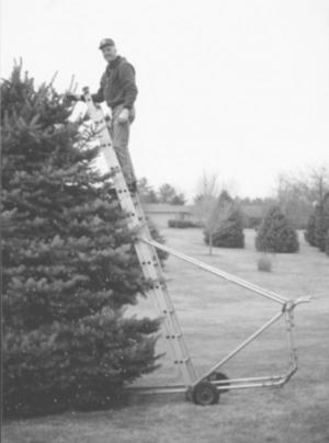 Until recently, James Granzow, Hubbard, Iowa, didn't have a problem putting Christmas lights on the trees around his house. But they're around 15 ft. tall now so he came up with a nifty free-standing ladder holder that'll work great for other jobs, too.