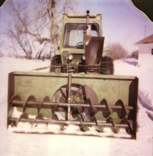 Another time a neighbor asked me to clear a path beside his house and back to his cistern so he could haul water to it. He showed me just where I should drive. However, when I got about half way to the cistern the machine started making an unfamiliar noise, so I backed up. It turned out I had blown away about half of a wooden picnic table, which he forgot was there. Even though the machine is now 35 years old, it still works good. (Wesley Lindstrom, 2743 171st St., Currie, Minn. 56123)