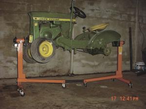 Hast built it for a Deere 110 tractor he picked up cheap that needed lots of work. He wanted to have a way to move it around easily to store out of the way between the times he had to work on it.