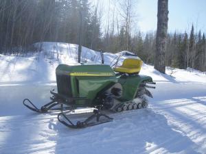 He then explains that he got the idea from a digitally altered photo he saw on the internet. The 23-year-old manufacturing engineer spent 7 months of his free time building his Deere Snow-Mower out of a 1980 Deere Liquifire snowmobile and a worn out garden tractor.