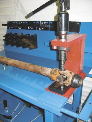Tool Holds Pto And Driveline Components In A Vise FARM SHOP Maintenance Gerald Westhoff New Vienna Iowa: “Holding pto and driveline components in a vise can be a challenge because it’s hard to hold them in place while turning the handle After 30 years of working with pto’s and drivelines we’ve developed a ‘C’ frame press that uses a special hydraulic jack and custom tooling to press bearing caps out of yokes; press bearing caps out of yokes to save the cross and bearing set; install a new cross and bearing kit; and hold pto halves so the safety shield can be removed “In addition we designed a table with the ‘C’ frame press mounted to it along with tooling to hold and align the pto drivelines while installing new parts A back panel stores the tooling for easy access The tooling works with American and Metric ag drivelines “We’re selling it through New Vienna Metal Works Inc a service center with a large inventory of American and metric pto yokes cross kits and shafting from Neapco Weasler G&G and others ph 563 921-3445; www NVmetalworks com ”
