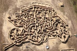 Mandeville’s first maze consisted of 500 small square bales and 60 large round ones that he baled on his grandfather’s farm. The next year the number of bales had tripled, and the design was more complex.