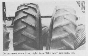 Turn-around time to do a set of tractor tires is about one week after they arrive at Olson's shop. "If a farmer is really in a rush and doesn't care about getting his old tires back, we have a few retreads made up and will send him these and take his old casings in exchange."