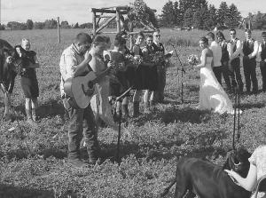 “The bridesmaids were show cows,” he says. “The wedding was in the middle of a farm field without electricity.”