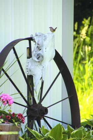 Ten years ago I hung an old cow skull on a steel wheel in front of a farm shed as a Halloween decoration. I left it there over winter. The following spring, when my wife said, “The skull has to go”, I had to tell her, “Absolutely not. There’s a wren making her nest in there and we’re going to see if she can raise a family.”