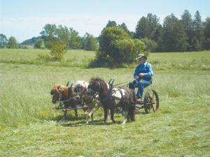 On his family’s 10-acre hobby farm in Fort Plain, N.Y., his minis provide the power for a variety of jobs including putting up hay. They mow, rake and load 6 acres of hay 3 times a summer.