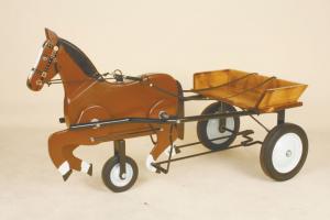 Horses are available as brown, brown and white, or black and white. Carts are available in dark green, dark gray and cherry colors.