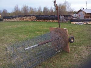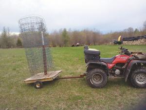 Unwinding rolls of woven wire fencing is an easy job for Roland Girard of Cochrane, Ontario, who built an ATV-pulled, trailer-mounted fence unroller.