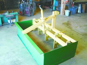 “With my design I never have to get off the tractor, and I can adjust the teeth depth incrementally. I can set all the teeth to dig deep on the first pass and then raise them on the second pass to level the loosened ground in a matter of seconds and never leave the tractor seat. Or I can raise the teeth completely out of the ground and use the scraper to fill pot holes.”