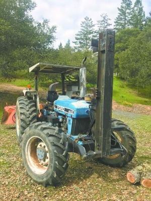 “I use it on my Ford New Holland 4630 4-WD 60 hp. tractor with a 3-pt. mounted, 9-in. Valby wood chipper on back,” says Gradek. “I go into the woods and back up to a felled tree to grind up the limbs. Then I cut it into chunks and use the splitter to make firewood. It can split up to 24-in. long wood. The end of the splitter beam can rest on a log chunk for support, or I can lay the beam on the ground if the log is really heavy.”