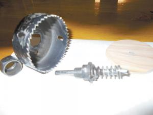 Hole Saw Fitted With Spring-Loaded Drill Bit