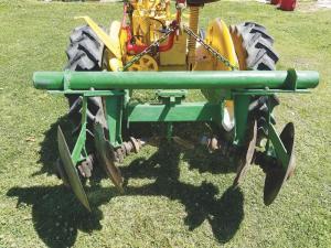 I came up with the idea because I wanted to switch to make 36-in. bedded rows in my garden. The rototiller tines exactly match the space between the tractor’s rear tires. The tiller breaks up the soil and then I pull a set of discs behind on a home-built toolbar that forms the beds. (Jesse LeBlanc, 248 Old Spanish Trail, Gibson, La. 70356; ph 225 287-0679; jesseleblanc33@yahoo.com)