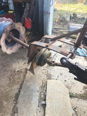 3-Pt Mounted Wire Winder FENCING Miscellaneous “I needed a heavy-duty wire winder to help fence off corn fields for my cattle to glean So I made a 3-pt mounted unit from the reduction gear off a grain auger the pto shaft from a manure spreader and an old wheel rim ” says Richard Zigler Charles Town W Va He used truck leaf springs and scrap metal to build a frame bending the springs down at a 90 degree angle The auger reduction gear was originally fastened to a big steel plate which Zigler cut off and welded to the springs The reduction gear drives a 2-in dia pipe that’s fastened to a small metal plate which has bolts welded onto it to support the wheel rim He widened the rim by cutting the center out of a pair of disc blades and welding one onto each side of the rim “It works great and is built much stronger than commercial wire winders mounted on a pickup bumper and driven by a starter motor and friction wheel ” says Zigler “Instead of having to drive alongside the wire to wind it up I can just park my wire winder at one end of the wire and reel it in “I’ve even used it to pull a 1 1/4-mile-long wire strand off a cleared field However it takes 2 men to operate this machine safely - one to drive the tractor and watch for debris and knots in the wire and the other to evenly guide the wire onto the wheel rim If the tractor driver sees a knot in the wire he can shut off the pto so the person guiding the wire into the winder doesn’t get caught in it ” Contact: FARM SHOW Followup Richard Zigler 1083 Roper North Fork Road Charles Town W Va 25414 ph 304 283-6799; rzigler01@gmail com