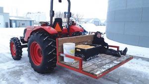 “We use it for a lot of different chores,” says Wipf. “It’s the same width as our smaller tractor so it’ll fit through barn doors when carrying buckets of feed. We also use it with our pressure washer to wash our house and other buildings, and it works perfect for cleaning up around the yard. We’ve used it to move push and riding mowers around, and to haul calves in calf cages. The metal sides make it safe for my son to ride along on it.”
