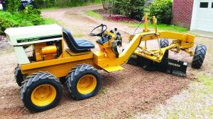 Hartley “Frank” Smith’s Cub Cadet motor grader looks like it came from a factory. A 12 hp., Kohler K301 air-cooled engine powers the 2,000-lb, 13-ft. long motor grader. The all hydraulic, 5-ft. blade does everything a full-size grader can do and just as smoothly.