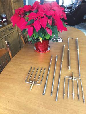 He Makes Custom Fishing Spears AG WORLD Lyle Edwards enjoys spear fishing so he decided to make his own spears They turned out well so he gave a couple to a nephew Word spread and soon others were asking for them Five years later Edwards sells a variety of spears he makes on his Adrian N D farm through his business Poseidon Spears “Mine are more robust with bigger tines than ones on the market I weld on the barbs and they are all stainless steel We can also do powder-coating if a customer wants ” Edwards says The tines are 5/16-in steel and the shaft is 1/2-in stainless steel He can customize the number of tines on each spear - from one to nine tines And customers can choose from oak walnut or exotic wood handles or choose ornate metal handles with brass accents Edwards sells full-length spears typically between 5 1/2-ft and 6-ft long Spears with shafts that have 2 pieces are also popular as they can be shipped and transported more easily and safely stored in a poly case The shaft sections connect securely with a set screw Each spear comes with 20-ft of paracord and a snug-fitting oak sleeve that protects the points of the tines Prices range from $275 to $475 plus shipping Edwards enjoys the challenge of customizing the spears with the accents and details customer’s request Examples can be found on his Facebook page Contact: FARM SHOW Followup Lyle Edwards 8438 59th St SE Adrian N Dak 58472 ph 701 320-0197; ndkingsnow@yahoo com; Facebook: Poseidon Spears