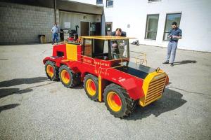 Combot says the entire exterior body of the tractor is custom-built using 3/4-in. plywood instead of metal. Large amounts of primer and filler were used before paint was applied.