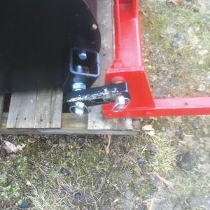 “I realized a clevis type bracket would also work as a top link connector,” says Yax. “By adding pins that screw in and out in brackets bolted to the outside of the 24-in. wide bucket, I can attach different width 3-pt. attachments.”