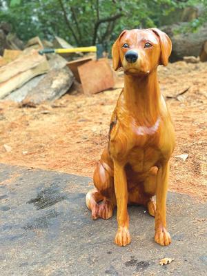 Currently, he has a 6-mo. lead time and is working on finding the best way to ship to the U.S. His popular dog carvings typically sell for between $850 and $1,500 plus shipping.