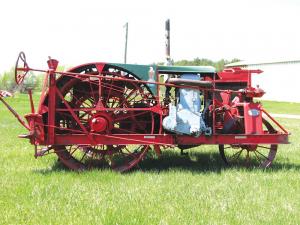 Maryland tractor collector Jim Gargani owns one of the most unusual tractors ever built, a Case 10-20. Designed as transitional power from large and bulky steam engines to smaller-size gas engine tractors, the 10-20 has many peculiar features, including a 22-in. wide by 52-in. tall main drive right rear wheel, a 12-in. secondary drive left rear wheel, and a single front wheel. The secondary drive wheel was mainly an idler but could be engaged by a temporary clutch for extra traction.