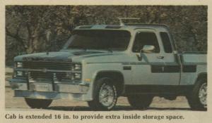 Schafer says the modifications are usually done on brand new pickups but can also be made on older models. The basic conversion costs about $4,600 and can be made on the Chevy Silverado, Scottsdale and Custom Deluxe; and the GMC Sierra, Sierra Grande, and Sierra Classic. The conversion can also be made on crew cabs.