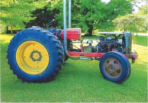 Lilly used the frame, wheels, operator station, and drive train of a Massey 44 tractor, coupled with a 350 V-8 Chevy truck engine. He designed and built a special drive shaft to mate the two components together.