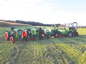 Landwehr’s oldest tractors are from 1948 and 1949, with water-cooled engines, that he had shipped from Germany. He notes that some models featured double seats as Germans often used them for farming and general transportation.