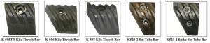 Our small tube bars have dual bolt mounts, to secure the bars to the rotor. We have 4 dual bolt styles, shown are the 28 degree K520.2 extended rasp all purpose bar for small seed and grain to corn & beans. And the K 521.2 spike bar, available with or without carbide. The carbide tip dramatically extends the spike wear and is the go-to bar for rice.