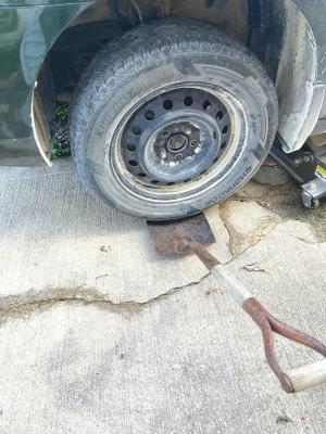 Shovel Helps Change Tire