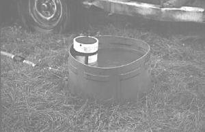 Mike Reicherts, New Hampton, Iowa, simply mounted a 500-gal. supply tank on top of a wagon chassis. Hoses run from out-lets at the bottom of the tank to water troughs made from plastic 55-gal. drums. The floats are protected inside pieces of pvc pipe