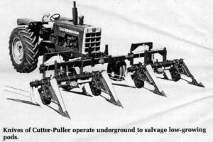 A Cutter-Pulley machine originally designed for harvesting edible beans is being used by Soybean growers to salvage low-growing pods that conventional cutterbars can't get. "On 40 bu. soybeans, we're finding it will salvage an extra 5 bu. or more per acre," Robert Kammer, president of United Farm Tools' Speedy Divison, Oelwein, Iowa, manufacturer of the new Speedy Cutter-Pulley, told FARM SHOW. He notes that soybeans whose growth has been stunted by drouth, late planting or frost tend to benefit most from the Cutter-Pulley.