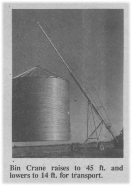 "Our Bin Crane is faster than bin jacks because you merely lift the bin with the winch as you add each ring," says Marvin Baumle, manufacturer, Kelsey, Alta.