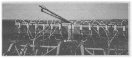 Each shank is fitted with a front tube that puts down straight nitrogen at 82% (liquified anhydrous) and a center tube that lays down the phosphorous. Both are-placed 3 to 4 in. deep. A cover plate at the rear of the shank seals up the fertilizer furrow.