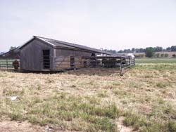The 14-ft. wide shed has a 20-ft. wide paddock on each side. The paddocks run the full length of the 40-ft. building. The 20-ft. steel pipe gates at either end of the paddocks are mounted to the corners of the shed with small swivel wheels mounted at outside corners. Pipe panels. "The swivel wheels help the gate ride over rough ground," says Nolt.