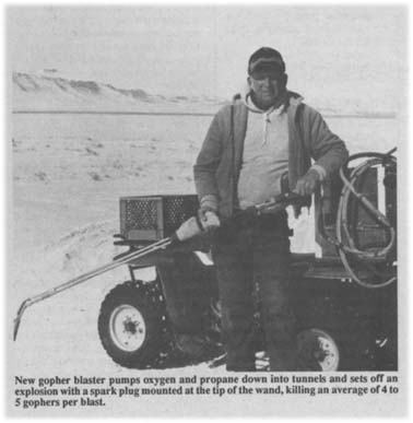 Gopher trapping isn't for everyone, though, notes Stager. "It's hard work and you have to work at it full time to make it pay. But there's a big demand out there for the service. Many farms have fields that have almost been ruined because of gopher damage." Stager will travel almost anywhere to trap and he is also considering making an instructional video available for farmers in other parts of the country.