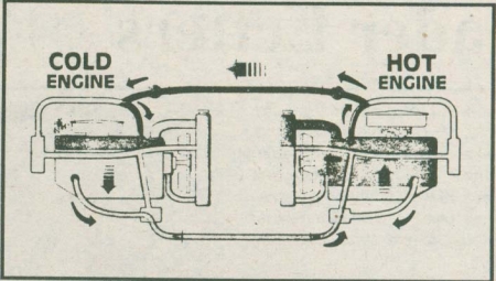 "It saves on starters, batteries and wear and tear on engines," says Edman who's been field-testing the system for the past two years. One of the biggest problems in putting the system together was finding a dependable low-volume pump. "It warms the cold engine gradually so there's no thermal shock to the engine. It'll raise the temperature of a cold engine 90 degrees in 10 to 15 minutes and lower the temperature of the 'master' engine 10 to 15 degrees."