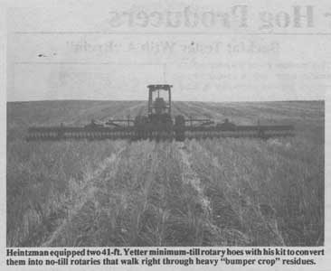 That'll all change as soon as Rick Heintzman, South Dakota farmer and custom operator from Onaka, gets his new no-till rotary hoe conversion kit into commercial production. He's applied for a patent and hopes to have it on the market this fall.