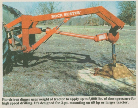 "Down pressure from a pair of hydraulic cylinders on this heavy-duty new post hole digger lets you drill right through solid rock or reinforced concrete," says Ron Harleman, Harbor Wisdom Engineering, Appleton City, Mo.