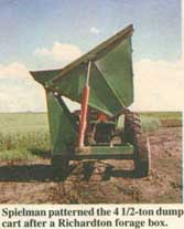 Once a field has been seeded with small grains, it’s virtually impossible to get back into it to pick up rocks without doing a lot of damage, unless you pick them out by hand. Mark Spielman, Twin Valley, Minn., got around the problem by mounting a tractor-pulled rock picker on the front of his 1982 Deere 2320 self-propelled swather and equipping the swather with big flotation tires. When he’s done picking rocks the swather converts back for harvest.