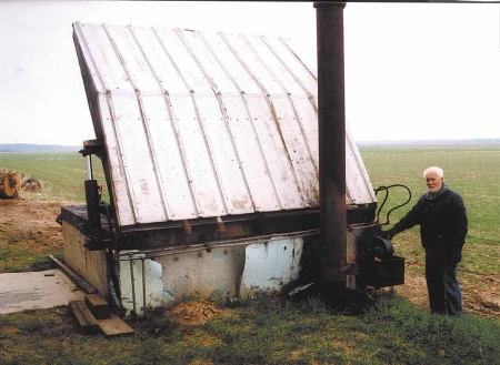 day. A 30-ft. length of 10-in. dia. irrigation pipe serves as a flue for the