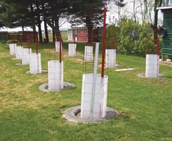 Barvinchack grows tomatoes, green beans, onions and other crops on 3/4 of an acre. The idea behind his system is to dig a 2-ft. deep hole and replace most of the original heavy clay soil with a mixture that includes sand, compost, horse manure and pulverized limestone. The soil mixture is filled up above the bottom bead of a full-sized truck tire with an inside diameter of 24 in. A 1/2-in. thick layer of crushed stones is added at the bottom of the hole to improve drainage. The tire is used to contain the soil and keep weeds out and water in.